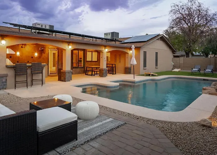 The 2-bedroom Champions Oasis Home - Near The Stadui2007M Withpool & Grill Phoenix accommodates guests in the Deer Valley district, 2.1 miles from Deer Valley Rock Art Center, and offers a private garden for guests to relax in.